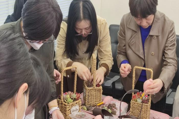 為順利舉辦此次活動(dòng),人力行政部定制了活動(dòng)橫幅并邀請(qǐng)了專業(yè)的多肉種植老師為大家講解示范。3月8日當(dāng)天下午,人力行政部精心布置好會(huì)場(chǎng)與多肉種植老師一起等待全體女同胞們進(jìn)入會(huì)場(chǎng)。